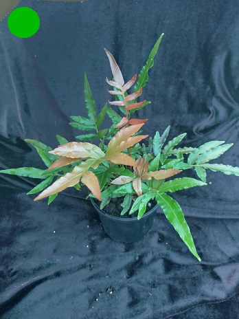 A broader leafed rasp fern giving good colour in the new growth. New foliage appears pink/bronze/red before hardening to a medium dark green. Well suited to semi exposed positions.